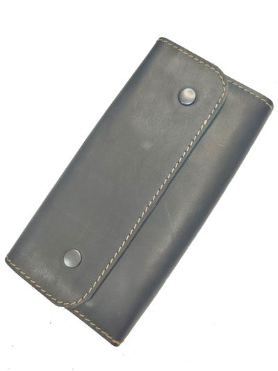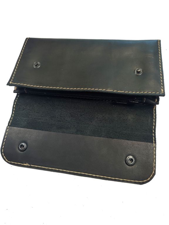 Объёмный мужской портмоне-клатч из натуральной кожи краст черного цвета .
