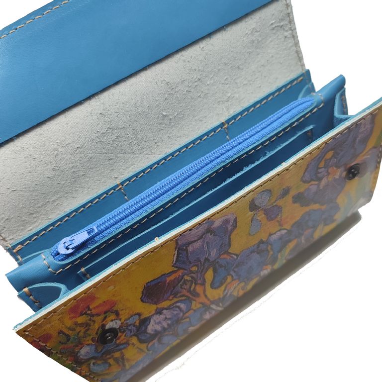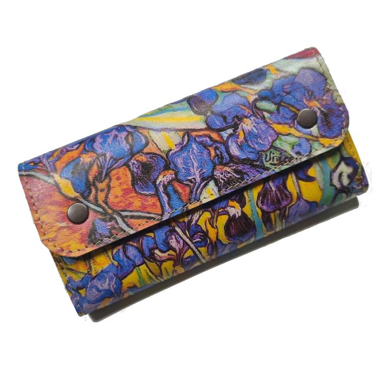 Объёмный портмоне из натуральной кожи с принтом по мотивам картины Винсента Ван Гога"Ирисы" .