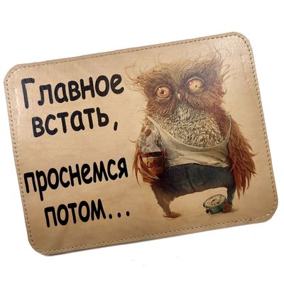 Коврик для компьютерной мышки из натуральной кожи с принтом.
