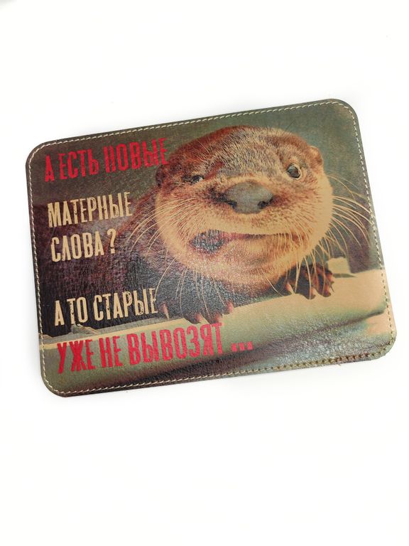 Коврик для компьютерной мышки из натуральной кожи с принтом.