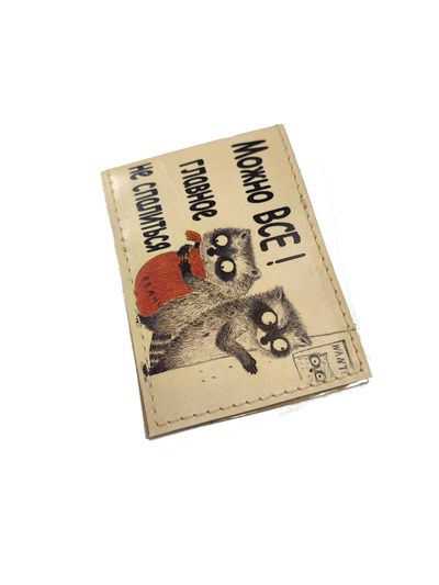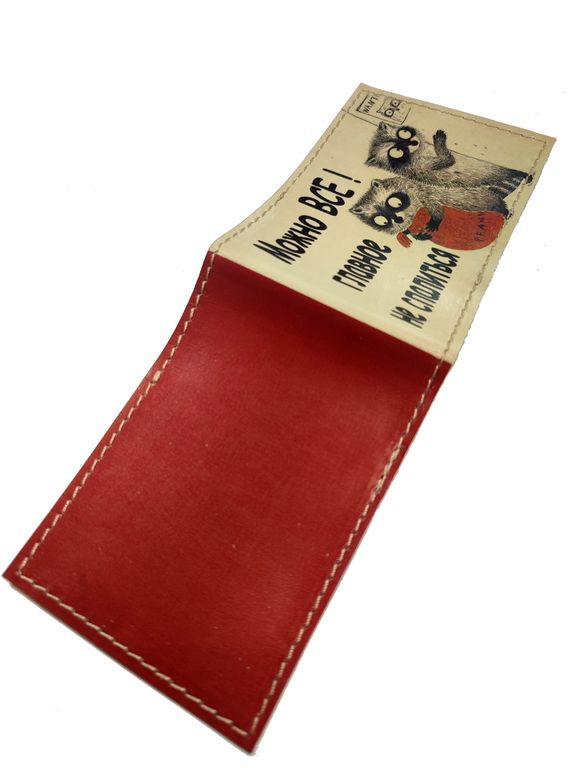 Обложка на студенческий билет из натуральной кожи с принтом.