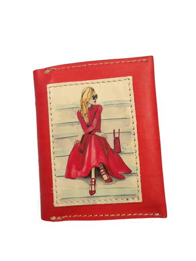 Компактный складывающийся портмоне с нашивкой из натуральной кожи с принтом.