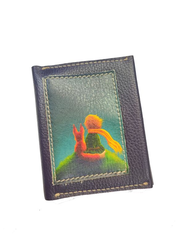 Компактный складывающийся портмоне с нашивкой из натуральной кожи с принтом.